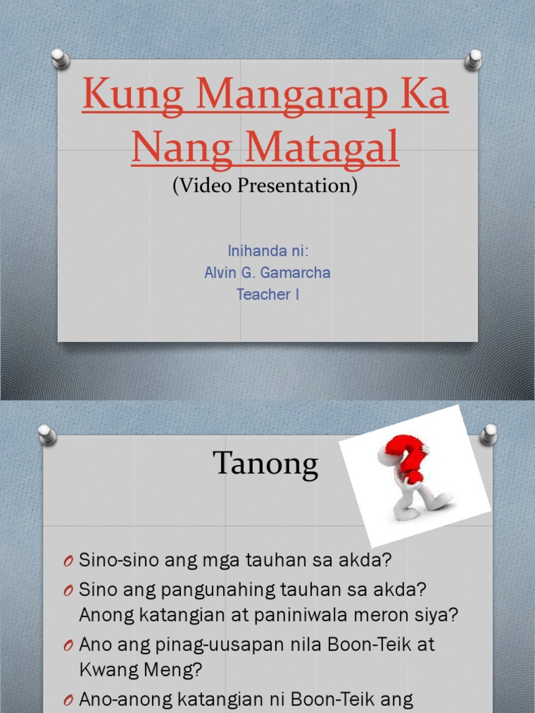 Kung mangarap ka nang matagal Lanie Lyn Alog. KUNG MANGARAP KA NG MATAGAL Kumatok si Kwang Meng kahit nakabukas ang pinto at nakita niya si Boon Teik na nakaupo sa sopa at nagbabasa. Ipabasa ang isang kabanata ng nobelang Kung Mangarap Ka Nang Matagal.